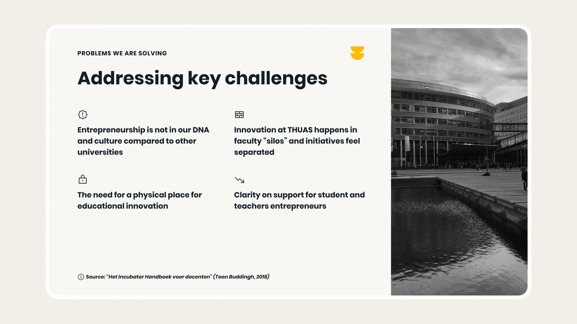 Launched THUAS’s first student incubator, boosting innovation reputation and increasing partnerships by 34% through sharp positioning and UX overhaul.